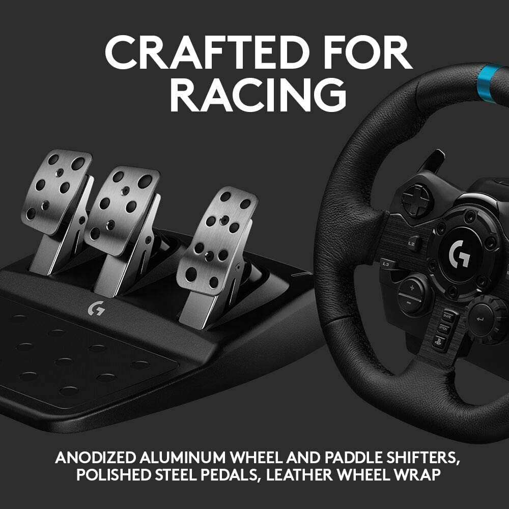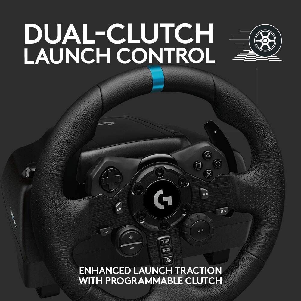 Logitech G923 Racing Wheel and Pedals for Playstation PS4 and PC, TRUEFORCE 1000 Hz Force Feedback, Responsive Driving Design, Dual Clutch Launch Control, Genuine Leather Wheel Cover [24 hours deliver