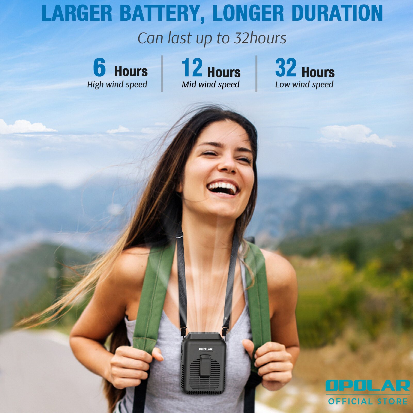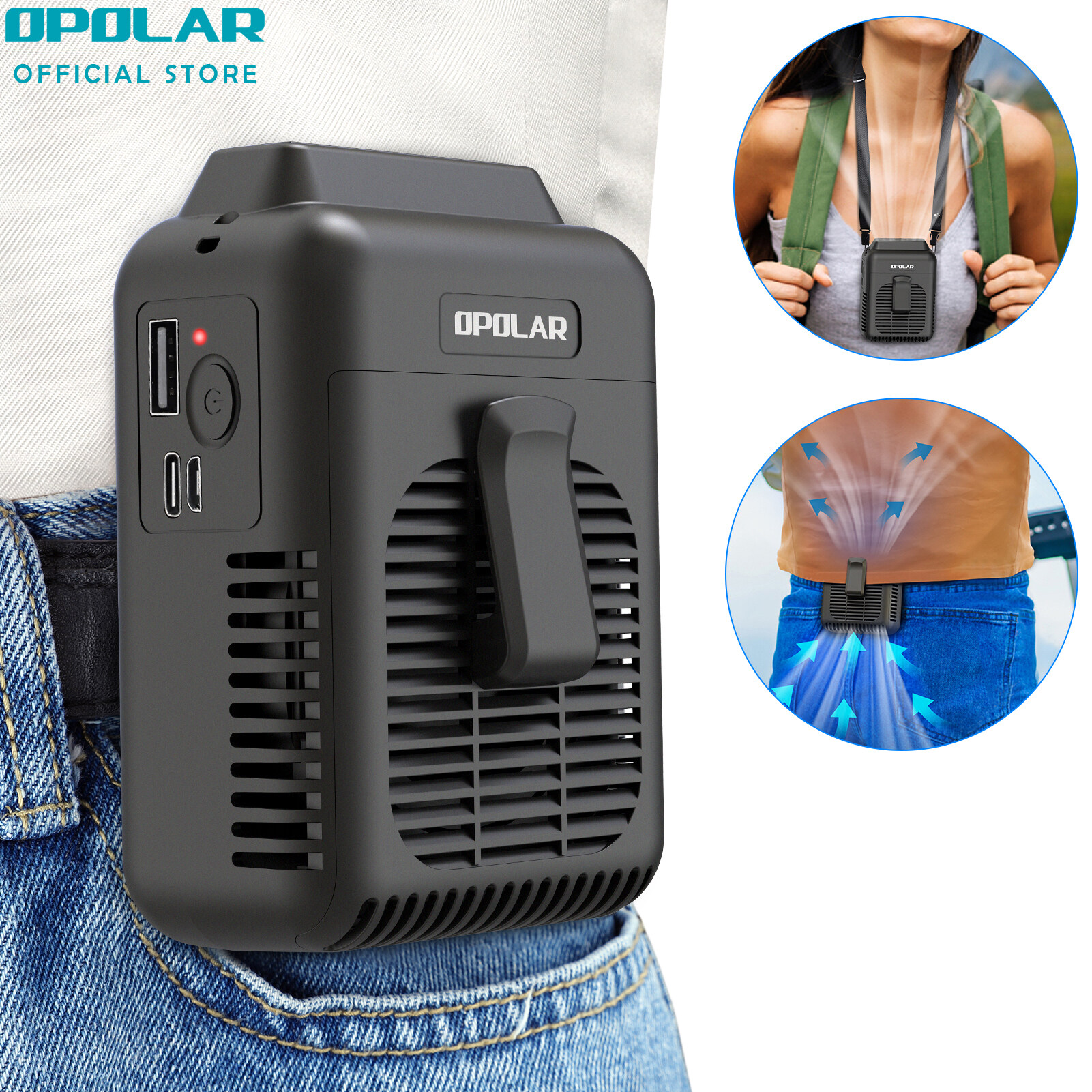 【Local Stock】OPOLAR 8000mAh Portable Waist Clip on Fan, Personal Neck Fan with 32H Working Time, Battery Powered Belt Fan, Adjustable air outlet, 3 Speed, Body Fan for Outdoor Working, Camping, Hiking