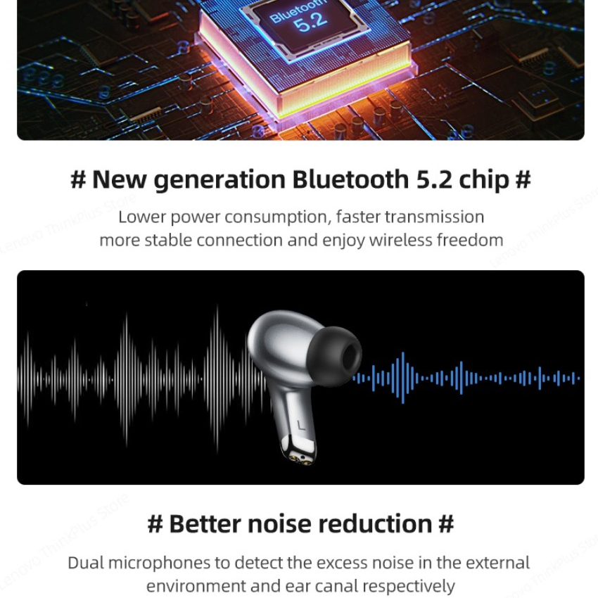 Lenovo LP5 Waterproof Headsets Reduce Noise HiFi Music Earbuds Wireless Headphones Bluetooth Earphones Charging Box