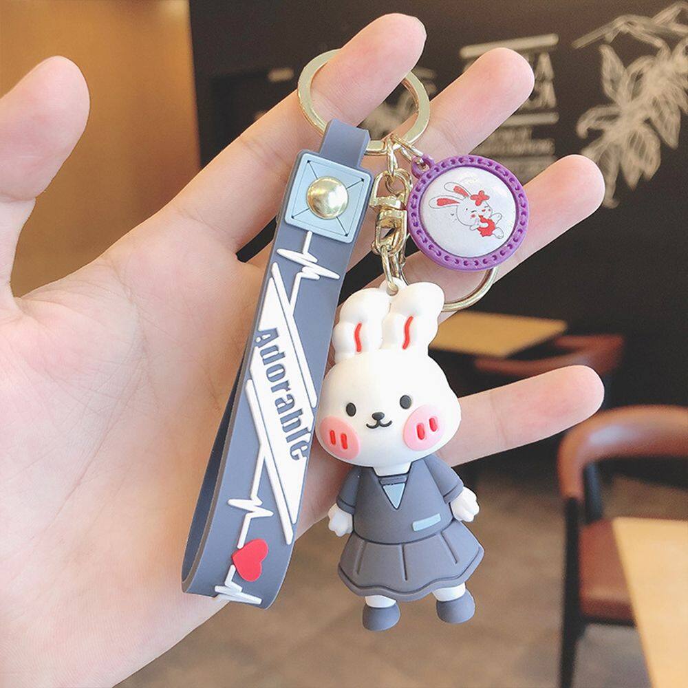 HUIHEYU Exquisite Cute Bear Bunny Doll Key Holder Car Key charms Couple Gift Blush Animal Keychain Wristlet Keychain Bag Ornaments Backpack Pendant