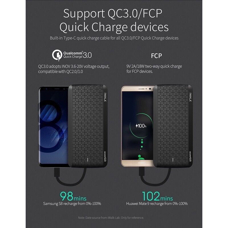 iWalk Scorpion Powerbank 12000mah Built in PD (Power Delivery) with Type-C Cable IP Cable Micro USB Cable
