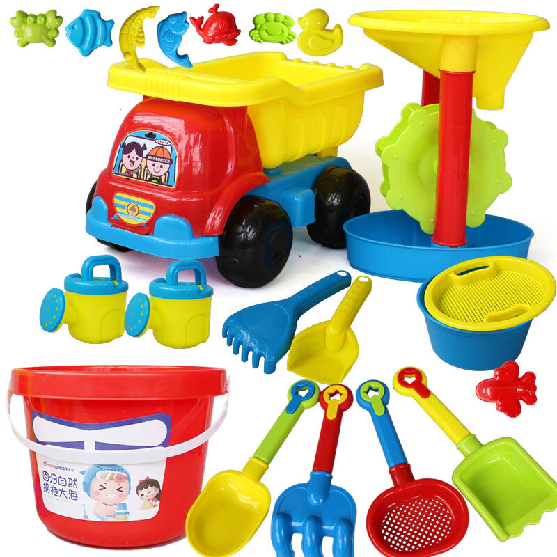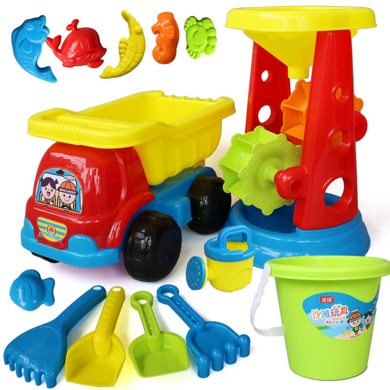 Children's Beach Toy Set Car Boy's and Girl's Hourglass Bucket for Playing Water Baby's Sand Pool Digging Shovel Toy and Tool for Sand Playing