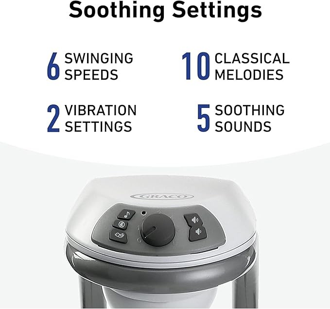 • 6 swing speeds let you find the right rhythm; 2-speed vibration helps soothe baby; 10 classic melodies and 5 nature sounds keep you happy and entertained; and the phone comes with 3 soft toys to keep baby entertained.
