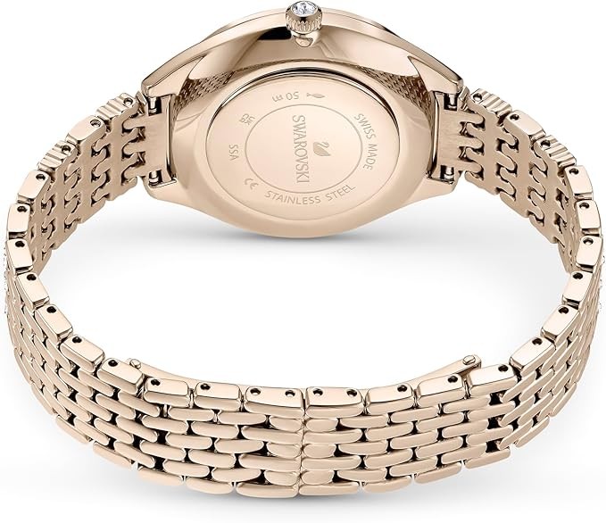 • Items delivered: (1) Swarovski Attract watch with guilloché dial and PVD-coated stainless steel casing on a champagne gold-tone finish metal band, complete with Swarovski watch box