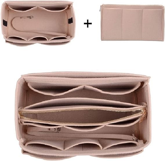 ZTUJO Purse Organizer Insert, Felt Bag Organizer with Metal Zipper, Handbag & Tote Shaper, For Speedy Neverfull Tote, 7 Sizes